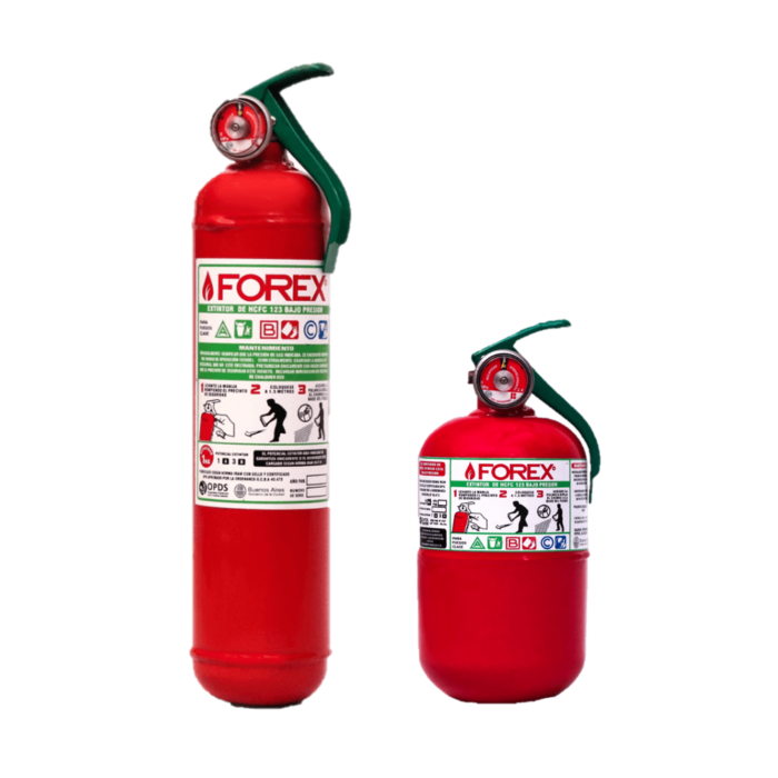 Extintor base de Hcfc 123 ( Haloclean ) de 1kg automotor de 3“ y 4” Forex. Fabricación y comercialización.